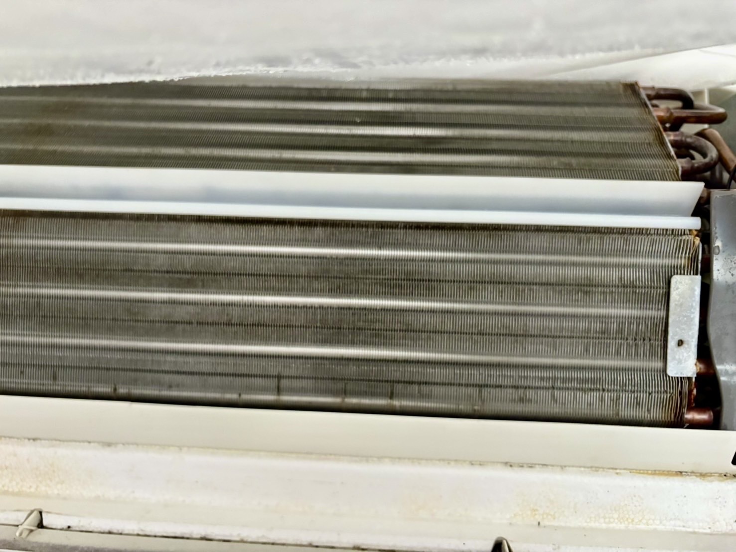 - 熱交換器や送風ファンにホコリがこびりついて取れない