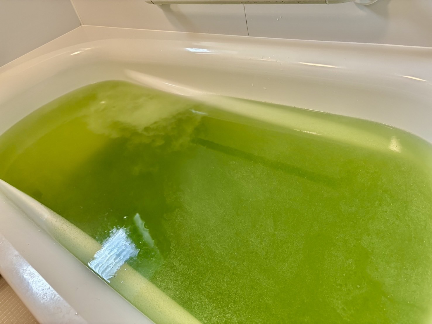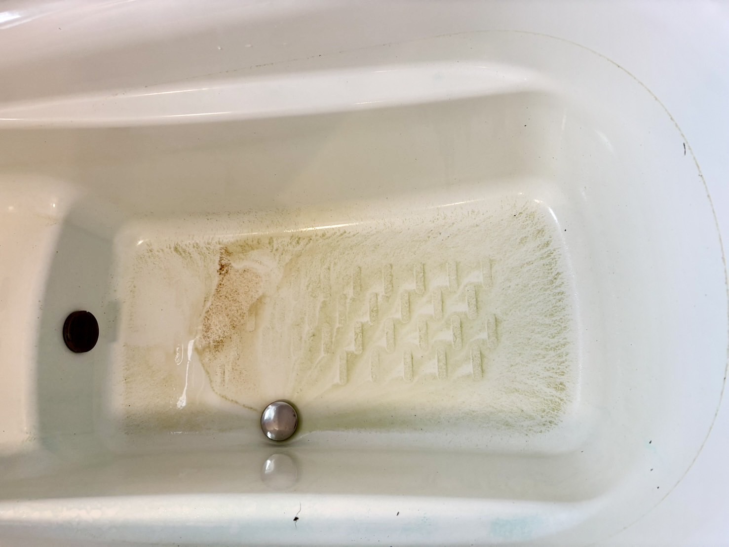 洗浄を開始してしばらくすると、浴槽に溜めたお湯が変色しているのが確認できます。