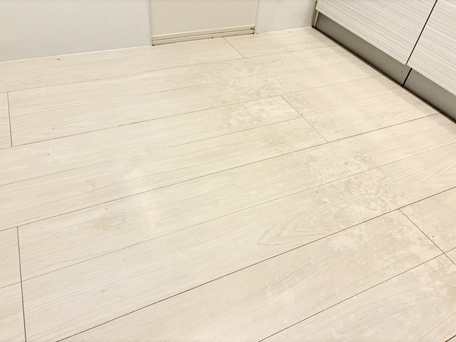床には油分を含んだ生活汚れの他に黒ずみがありましたので、こちらもお悩みとのことでした。